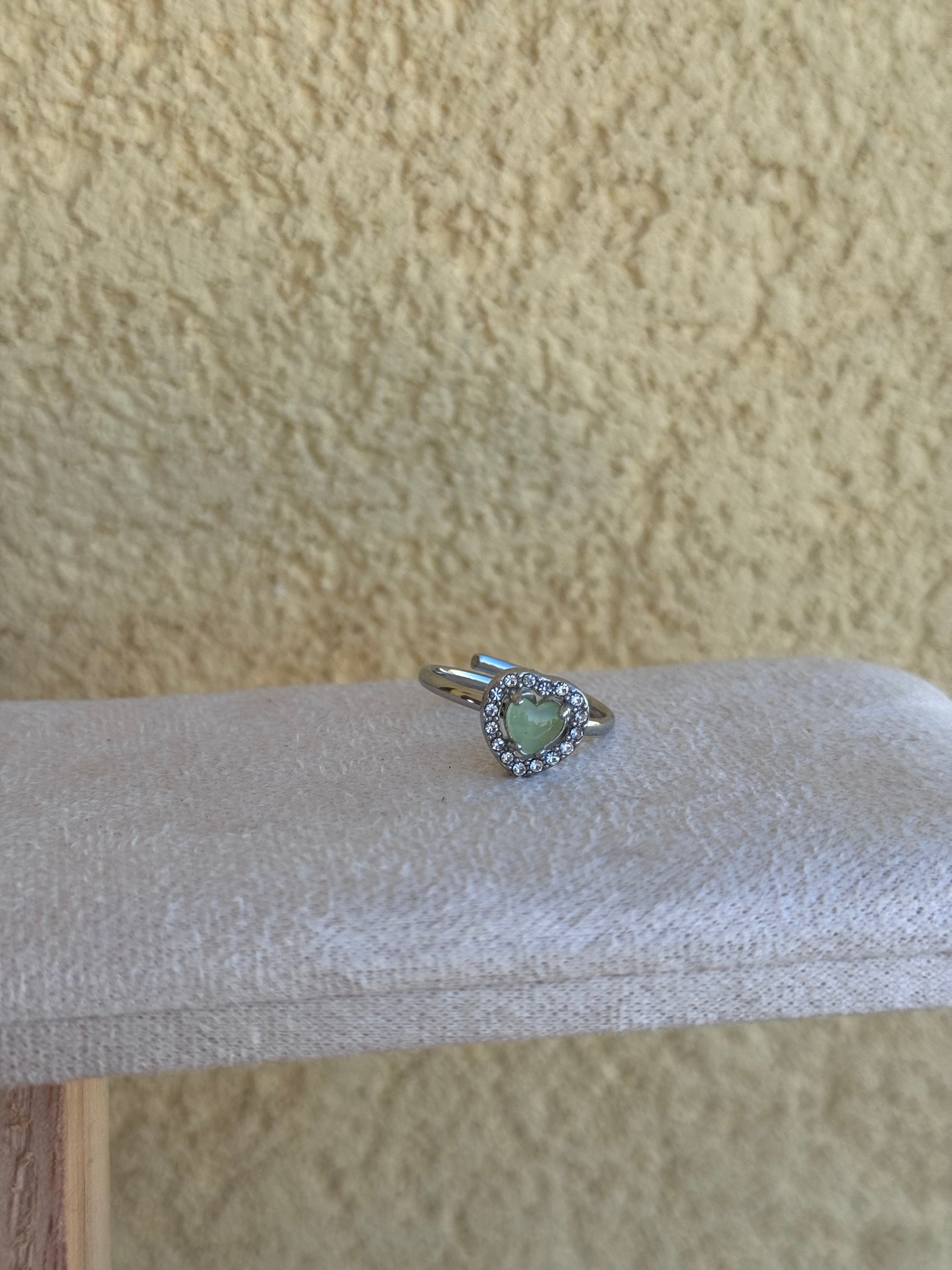 Bellissimo anello a forma di cuore impreziosito da strass centrale a forma di cuore e strass laterali.