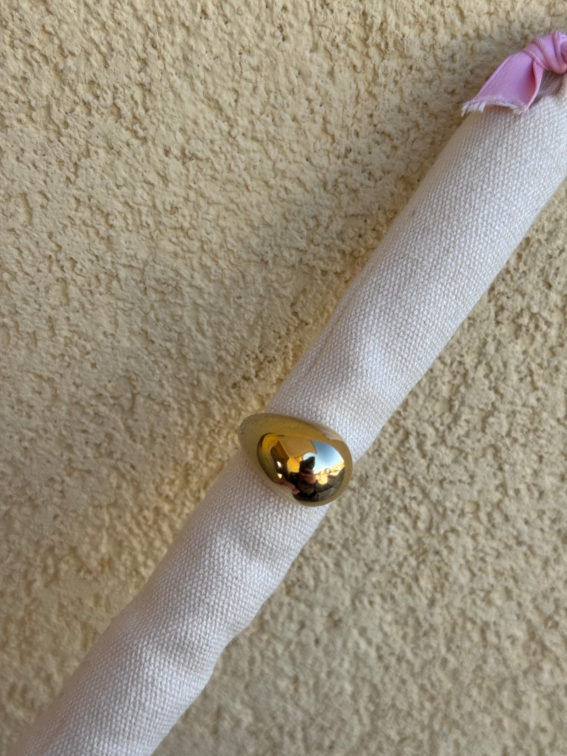 Anello a forma di maxi goccia dorata.