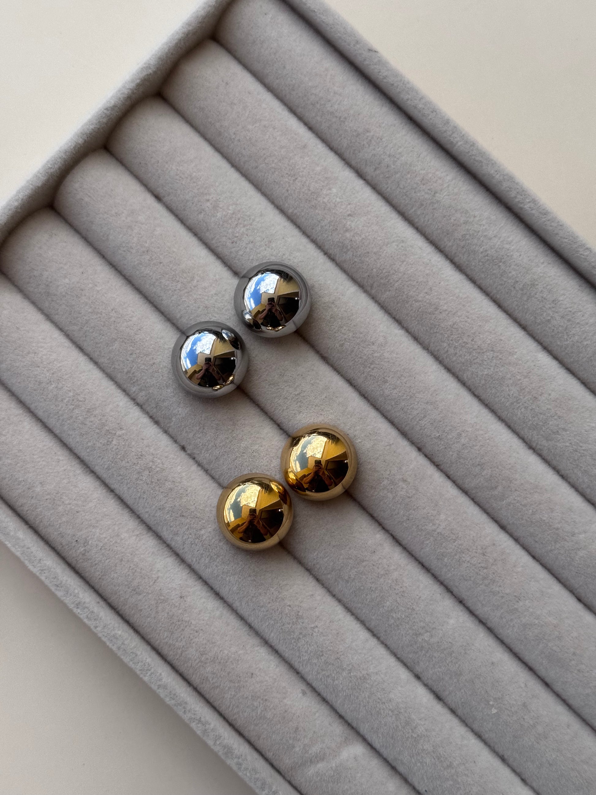 Orecchini a bottoncino modello sfera liscia. Acciaio inossidabile